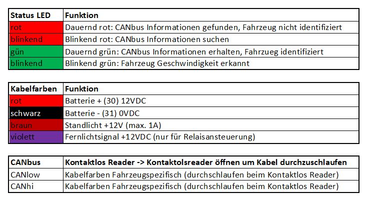 Anschlussdetail und Kompatibilität finden Sie in den Dokumenten zum Download. Für den Fahrzeugspezifischen Einbau bitte CANM8 App herunterladen und mit QR Code auf Steuergerät die Einbauanleitung herunterladen.