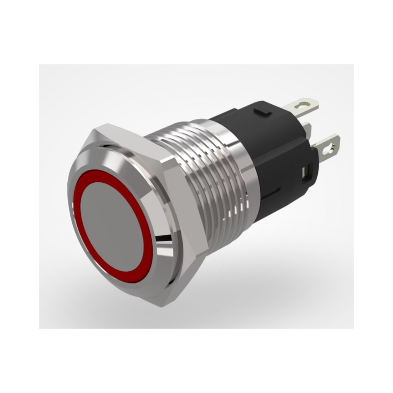 1 Stück Drucktastenschalter rastend IP67, rot beleuchtet 12VDC