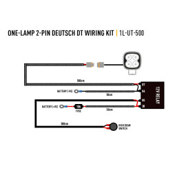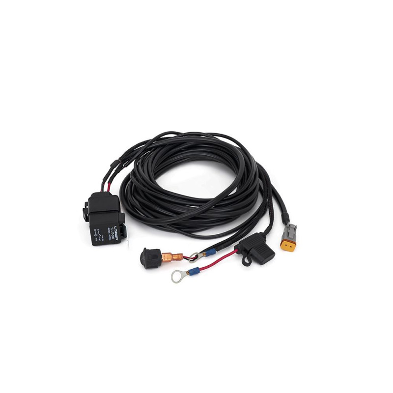 Einzellampen-Kabelsatz für Lazer Lamps Hochleistungs-LED-Scheinwerfer. Die Einrichtung ist dank des 2-poligen Deutsch-Anschlusses schnell, einfach und zuverlässig und erfordert keine Konfiguration. Das Kit verfügt über ein 12-V-Relais (in einem wasserdichten Gehäuse), eine Sicherung, eine Batterieklemme an einem Ende und 5 m Flexkabel am Scheinwerferkabel und ermöglicht den Betrieb von Lazer-Produkten entweder parallel zur Standardbeleuchtung des Fahrzeugs und/oder über einen unabhängigen Schalter, der in Ihrem Fahrzeug montiert werden kann.