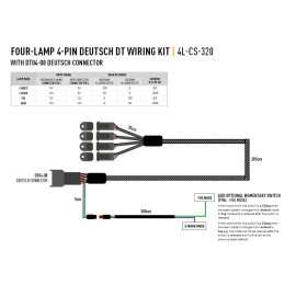 Die ideale Lösung für die Verkabelung eines Paares von Lazer Carbon-6 (Gen3) Hochleistungs-LED-Fernscheinwerfern. Die schnelle, einfache und zuverlässige Einrichtung mit Deutsch DT06-4S Steckern erfordert keine Konfiguration. Der Bausatz verfügt über ein 12-V-Relais, eine Sicherung sowie über einen Batterieanschluss an einem Ende und 3,2 m Flexkabel an den Scheinwerferkabeln. Der Kabelsatz ermöglicht den Betrieb von zwei Lampen über einen Ein/Aus-Schalter, der im Cockpit Ihres Fahrzeugs montiert werden kann.