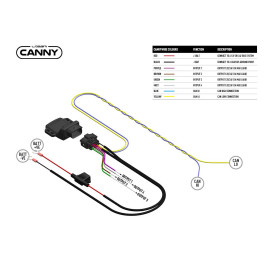 Der Anschluss an die CAN-Leitungen des Fahrzeugs erfolgt über den mitgelieferten Kabelbaum, mit den blauen (CAN Hi) und gelben (CAN Lo) Leitungen, die mit wärmeschrumpfenden Crimpverbindungen in Automobilqualität geliefert werden, um wasserdichte Verbindungen herzustellen. Der mitgelieferte Kabelbaum enthält auch eine abgesicherte Pluspol-Batterie und eine Masseleitung. Zusätzlich gibt es 4 Ausgangsleitungen, die jeweils programmierbar sind, um auf verschiedene Eingaben zu reagieren, sei es: Fernlicht, Positionslicht, Zündung, Rückwärtsgang usw., und die mit jedem unserer Fahrzeug-Kits kompatibel sind (wenn der erforderliche Ausgang >1Amp ist).