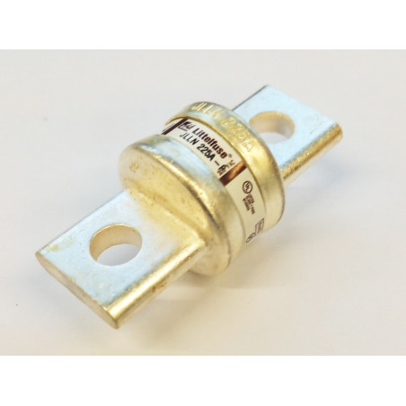 Sicherung Klasse T 225A für hohe Kurzschlussströme wie sie bei Lithium Batterien möglich wären. Ist ab einer Lithium Bank von 400Ah empfohlen.